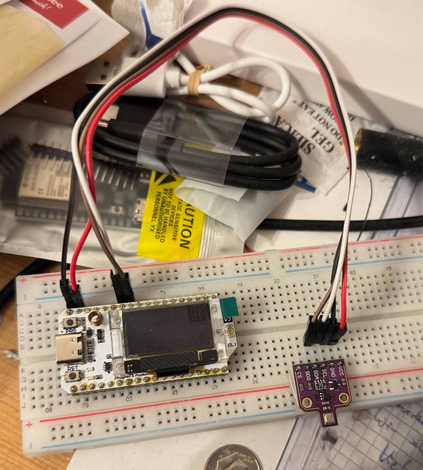 Als Microcontroller habe ich wohl zur simplesten Lösung überhaupt gegriffen: Das Heltec LoRa 32 V3 ist ein leistungsstarkes IoT-Entwicklungsboard mit einem ESP32-S3-Mikrocontroller, integriertem LoRa-Modul (SX1262) und einem 0,96-Zoll-OLED-Display. Es unterstützt Wi-Fi, Bluetooth und LoRaWAN, wodurch es ideal für drahtlose Sensoranwendungen, Smart-City-Projekte und IoT-Netzwerke ist. Dank der verbesserten Leistung des ESP32-S3 bietet es mehr Rechenleistung, niedrigeren Stromverbrauch und eine größere Reichweite im Vergleich zu den Vorgängerversionen
