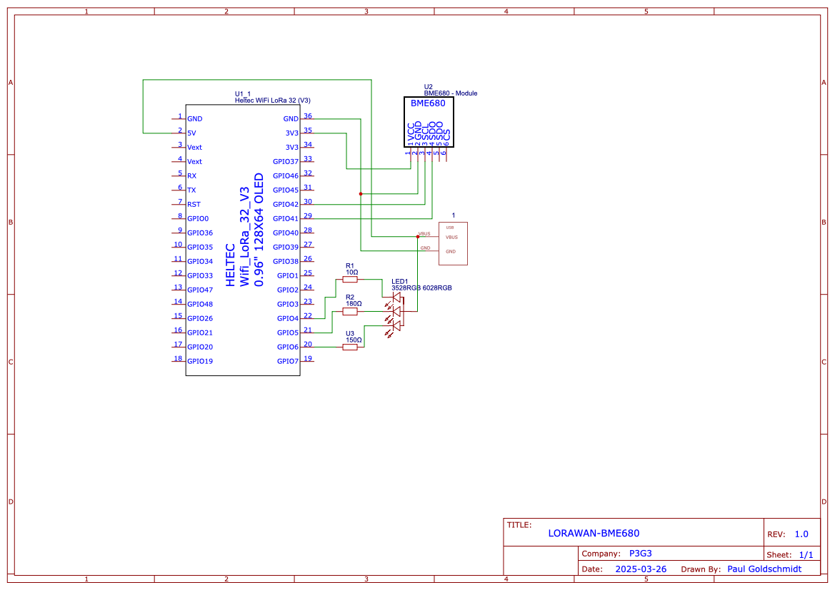 Die Software habe ich möglichst einfach gehalten und deshalb mit den bereits vorhandenen Bibliotheken auf der Arduino-Plattform gearbeitet: einer Library für den BME680 (Zanshin_BME680) und der Standart-Bibilothek des LoraWAN-Senders LoRaWan_APP: Das Programm initialisiert den BME680-Sensor und das LoRaWAN-Modul, wobei es LED-Pins zur Statusanzeige setzt und überprüft, ob der Sensor korrekt erkannt wird. Anschließend läuft es in einer Schleife, in der es sich mit dem LoRaWAN-Netzwerk verbindet, Sensordaten erfasst und diese in einem strukturierten Format überträgt, wobei LED-Signale den Sendevorgang anzeigen. Nach jeder Übertragung wechselt das Programm in einen Schlafmodus, um Energie zu sparen, bevor es nach einer definierten Zeit den Zyklus erneut beginnt. Hier geht es zu dem Projekt auf GitHub: paulgoldschmidt/lorawan-bme680