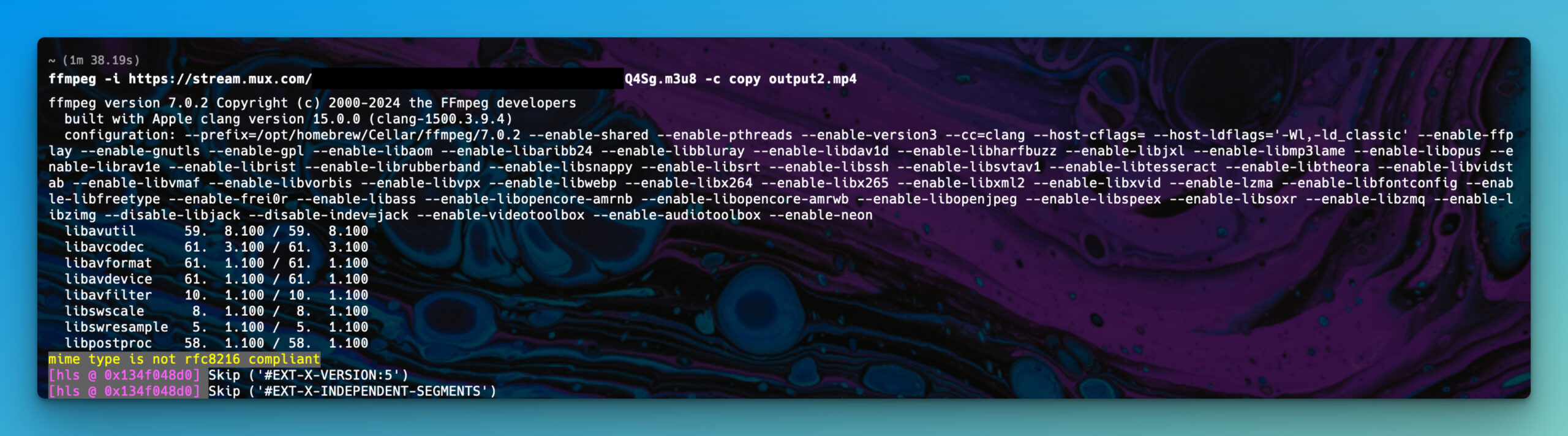 ffmpeg -i https://stream.mux.com/PLAYBACK-ID.m3u8 -c copy output2.mp4