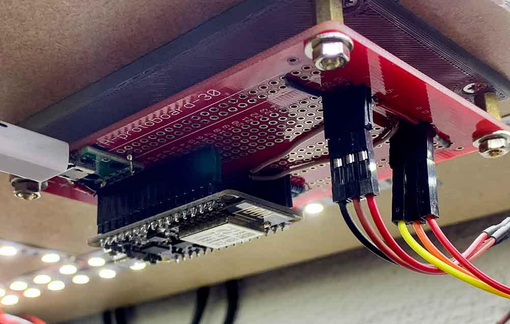 Deshalb habe ich die dritte Messtation im November 2020 in Betrieb genommen, eine Besonderheit stellt bei dieser der Aufstellungsort dar: Da ich durch meinen 3D-Drucker auf einmal einen Internetzugang im Keller finden konnte, baute ich die Hauptplatine unter das Gehäuse des 3D-Druckers ein, so konnte ich mir gleich etwas Strom des Druckers abzapfen.