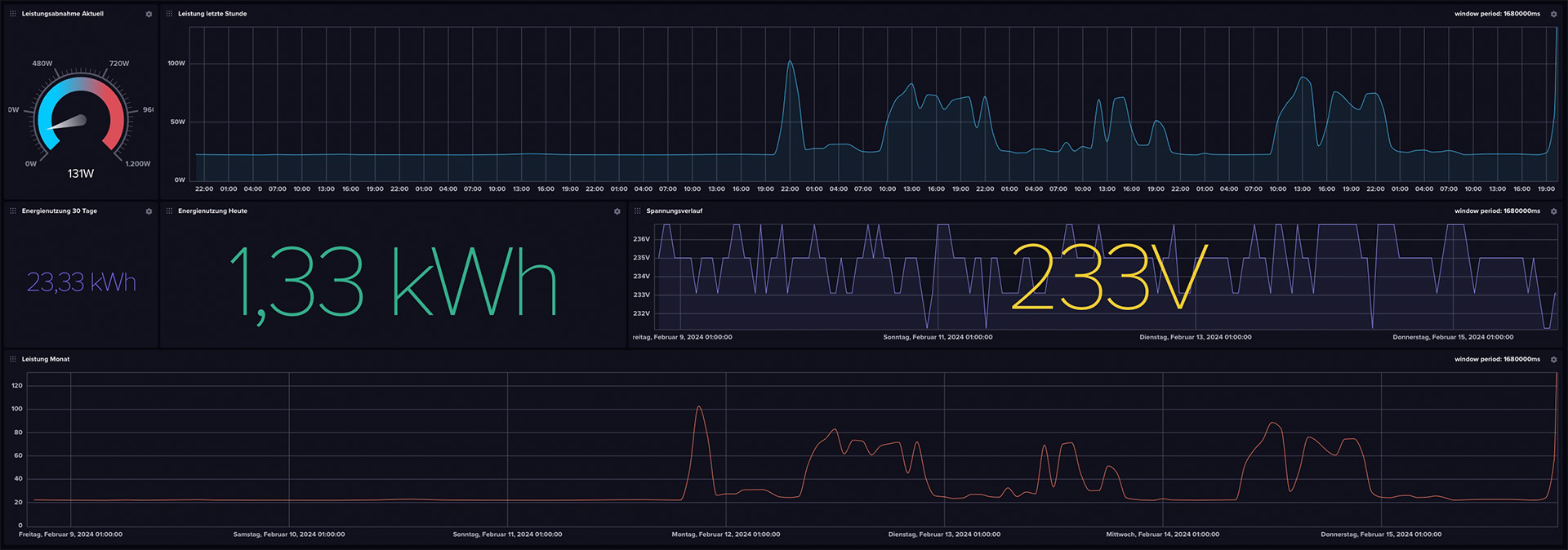 Diese Abfrage liefert zwar einen Wert, der dem Tagesstromverbrauch nahe kommt, aber weicht (wahrscheinlich wegen dem festen Teiler von 104) mal mehr, mal weniger ab von dem eigentlichen Ziel - wenn jemand von euch Erfahrung mit Flux hat, gebt gern bescheid, wenn ihr meinen Fehler in dem Skript seht!